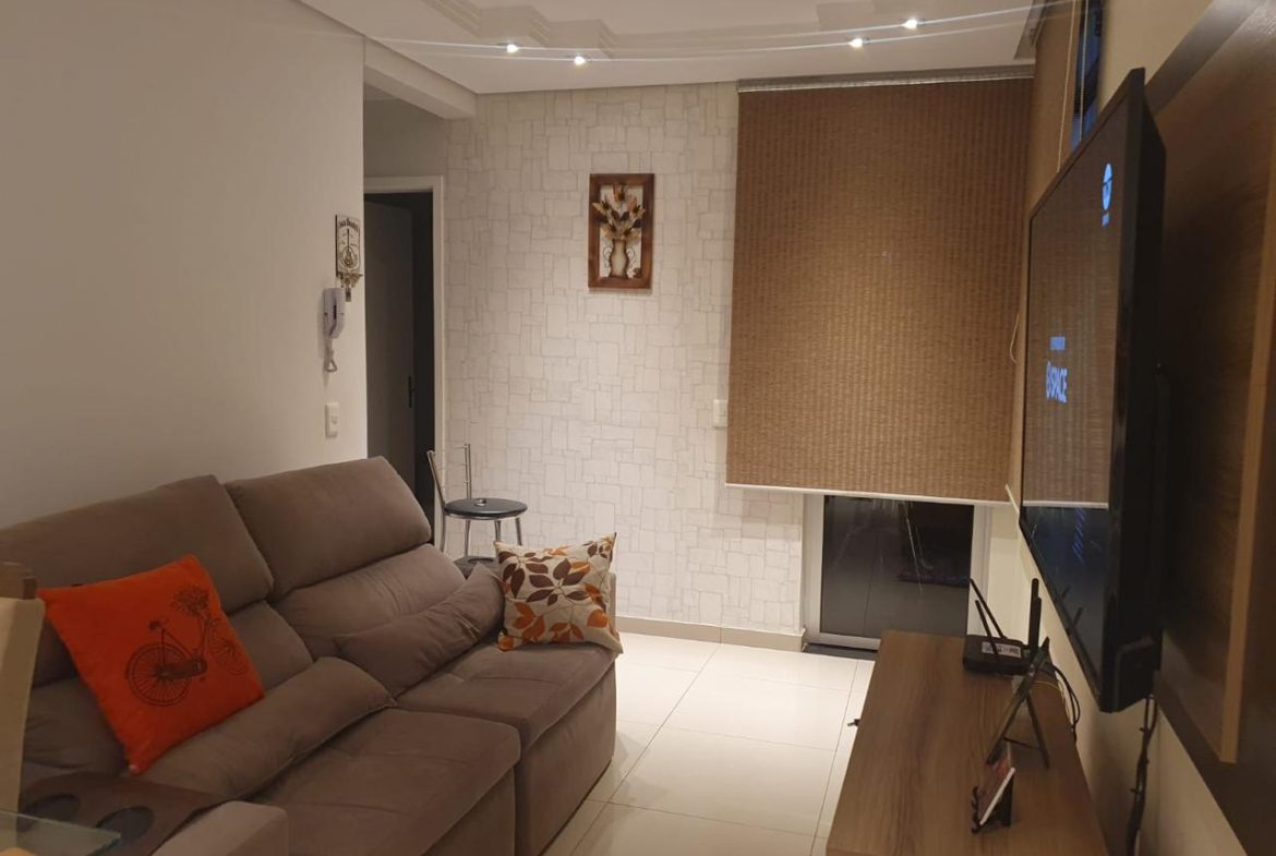 Área de lazer com churrasqueira e playground. Excelente acabamento em todo o apartamento com área privativa. Vaga coberta.